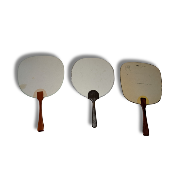 - Set of 3 vintage Japanese wooden fans with elegant craftsmanship