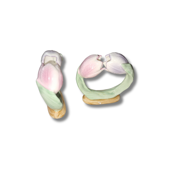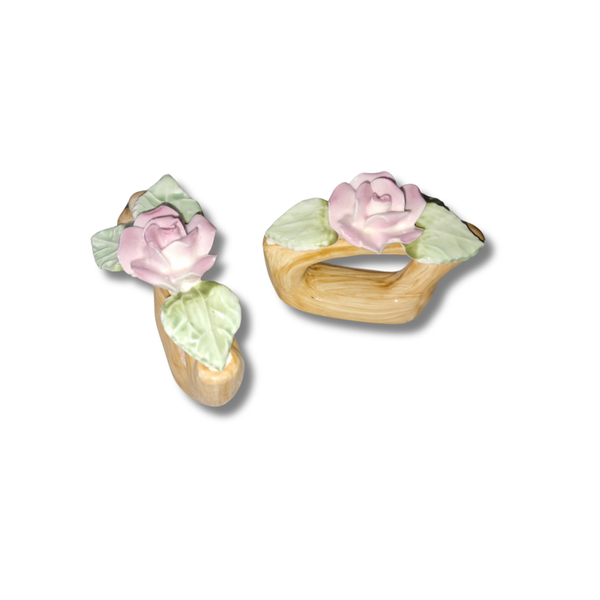 Each piece is uniquely crafted, blending natural floral forms with a gentle, glazed ceramic finish that feels as soft to the eye as it is to the touch. With sizes ranging from 3" x 1" to 4.5" x 2", these floral napkin rings add subtle sophistication to any table setting. A standout among curated collectibles, they’re perfect for vintage-inspired gatherings, spring brunches, or simply displaying as pre-loved home accents with a story to tell.