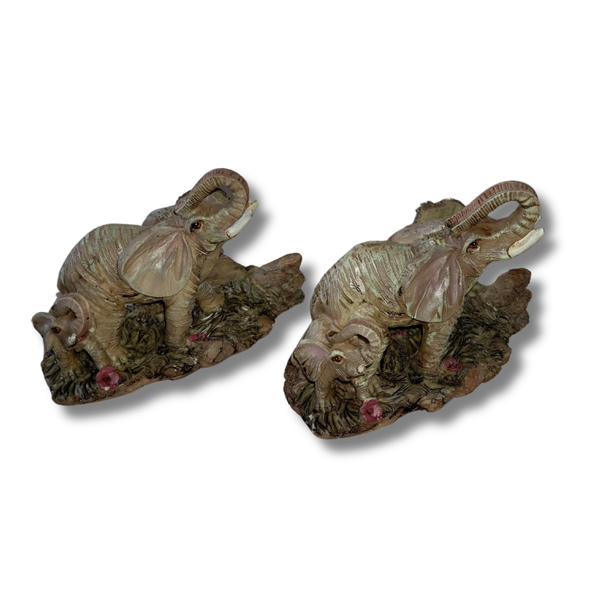 - Set of two matching elephant figurines, featuring a mama elephant and baby