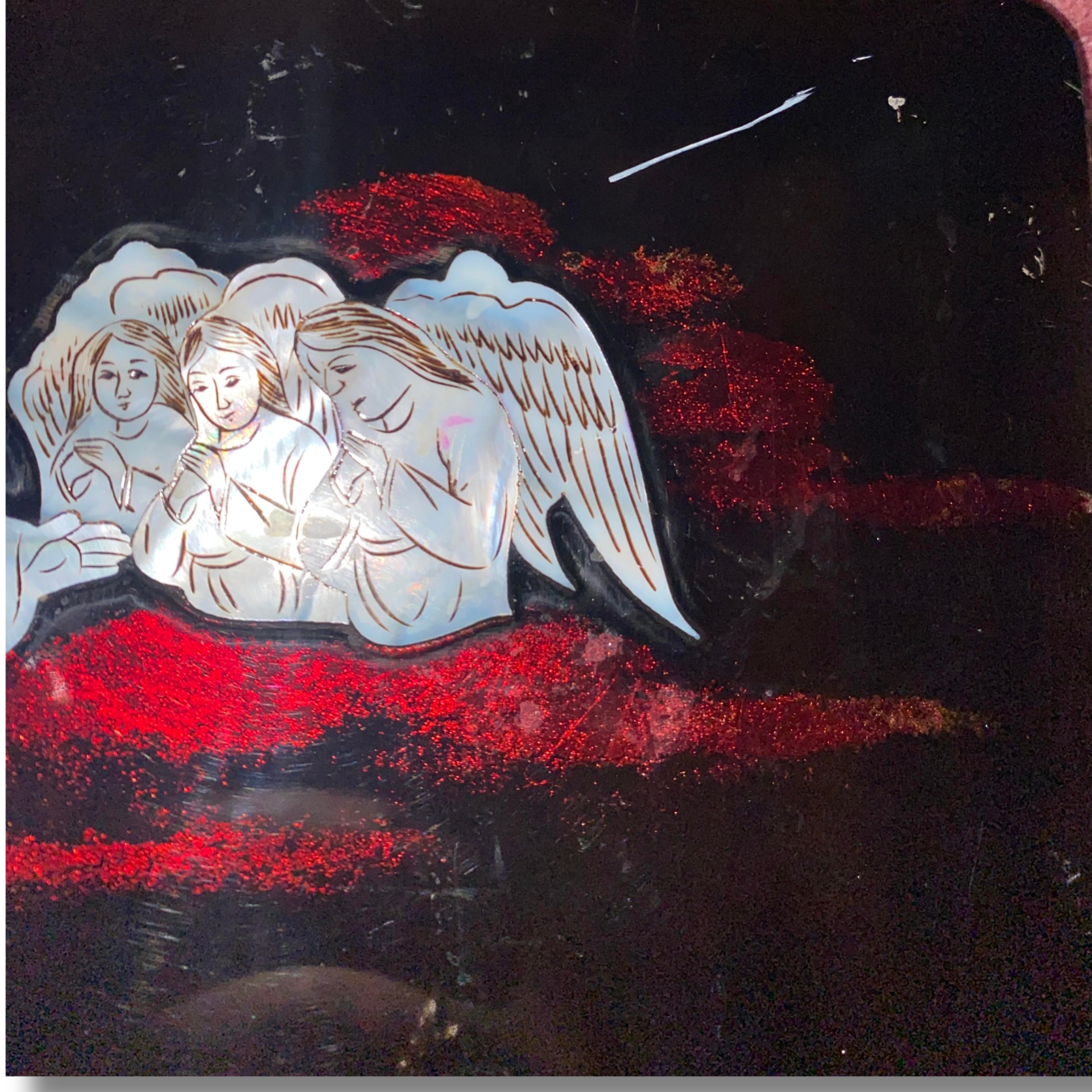- Handcrafted Mother of Pearl inlay depicting Jesus, Madonna & Holy Spirit