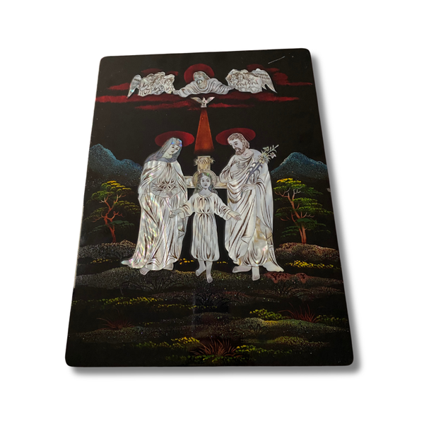 Mother of Pearl Inlaid Christian Wall Art – Jesus, Madonna & Holy Spirit – Timeless Catholic Lacquered Hanging