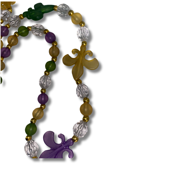 Frosted Fleur-de-Lis Beaded Necklace – 21" Hand-Strung Mardi Gras Bourbon Street Souvenir