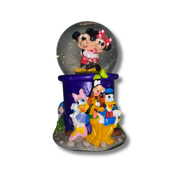 Step into a tiny world of magic and nostalgia with this vintage 1986 Disney sparkle globe, a charming keepsake that captures the heart of childhood wonder. Featuring a whimsical purple castle surrounded by beloved characters—Mickey Mouse, Minnie, Goofy, Donald, and Daisy—this mini globe is a joyful celebration of classic Disney storytelling in collectible form.