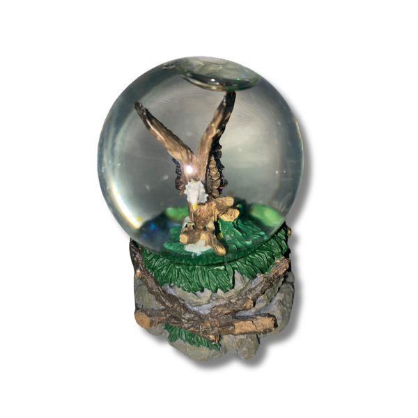 Mini snow globe featuring a majestic eagle in nest with nature scene
