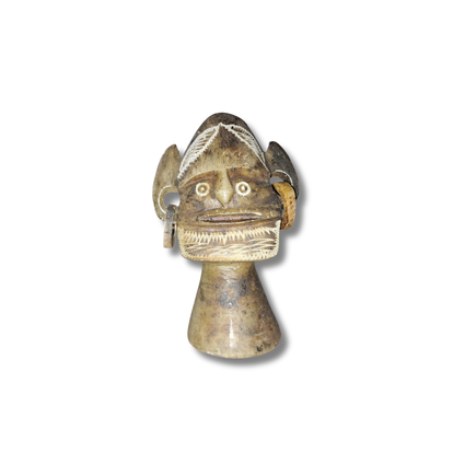 Infused with history, craftsmanship, and a deep sense of cultural expression, this vintage tribal carved sculpture is a soulful addition to any curated collection. Featuring an intricately carved ethnic head and face design, this small yet substantial piece offers both visual impact and tactile charm.