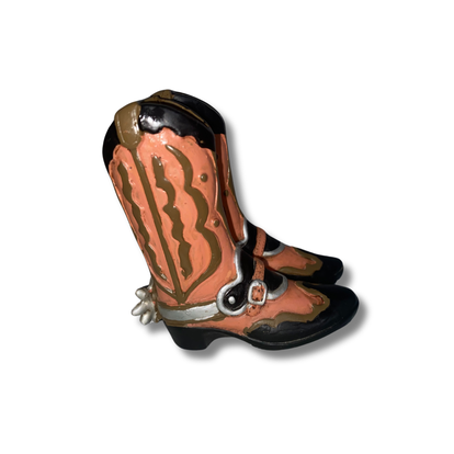 Celebrate rugged Americana charm with this miniature Western cowgirl boots figurine — a nostalgic tribute to rodeo spirit and frontier flair. Dated 1998, this charming sculpture captures the essence of old world charm in a compact 3.5" x 1.5" form, complete with finely detailed spurs, realistic leather texture, and a gently weathered patina that speaks to its vintage soul.