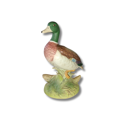 Bring a touch of old-world charm to your space with this Andrea by Sadek mallard duck figurine, a beautifully crafted vintage ceramic piece made in Japan. With its rich, earthy tones and lifelike detailing, this decorative figurine captures the elegance of nature, making it a one-of-a-kind find for collectors of antique collectibles and those who appreciate fine craftsmanship.