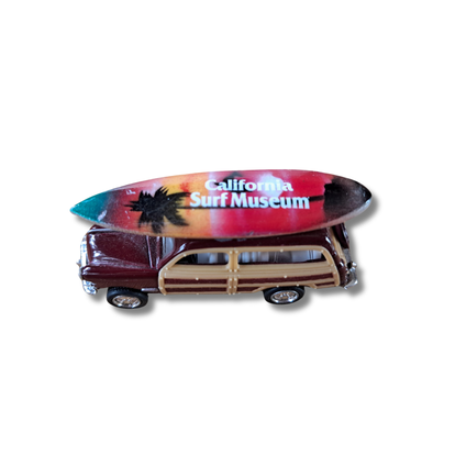 Capture the laid-back spirit of California’s coast with this charming California Surf Museum collectible magnet, featuring a classic Ford Woody wagon parked beneath golden sunset palm trees. This miniature piece of nostalgia brings West Coast surf culture to life with vibrant color, scenic design, and timeless style—a small but mighty tribute to the California dream.