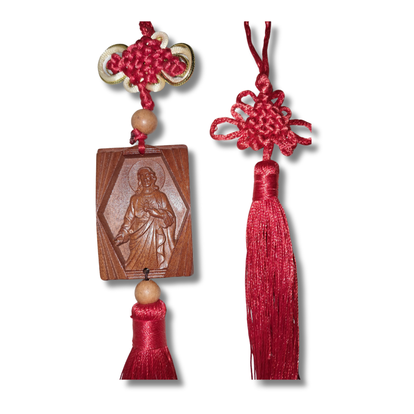 This beautifully crafted Catholic Jesus red tassel brings a sense of reverence and artistry to any space. Featuring an intricate religious decorative knot & tassel, this piece serves as both a meaningful keepsake and a striking spiritual home accent. With two variations available—one showcasing a Jesus pendant and the other featuring an elegant writing pendant with a prayer in another language—this one-of-a-kind find is ideal for those seeking a touch of devotion in their decor.